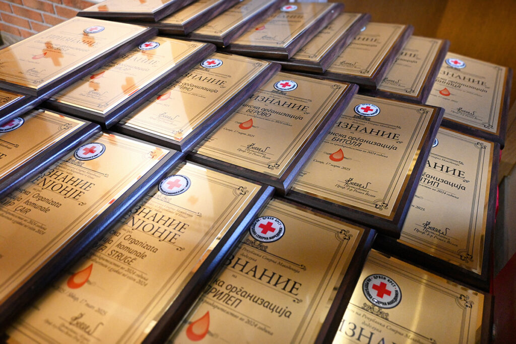 Kryqi i Kuq i Republikës së Maqedonisë së Veriut sot, më 28 tetor 2025, ndau mirënjohje jubileu për 20 Organizata Komunale të Kryqit të Kuq, të cilat e realizuan dhe e tejkaluan planin vjetor për dhurimin e gjakut për vitin 2024.