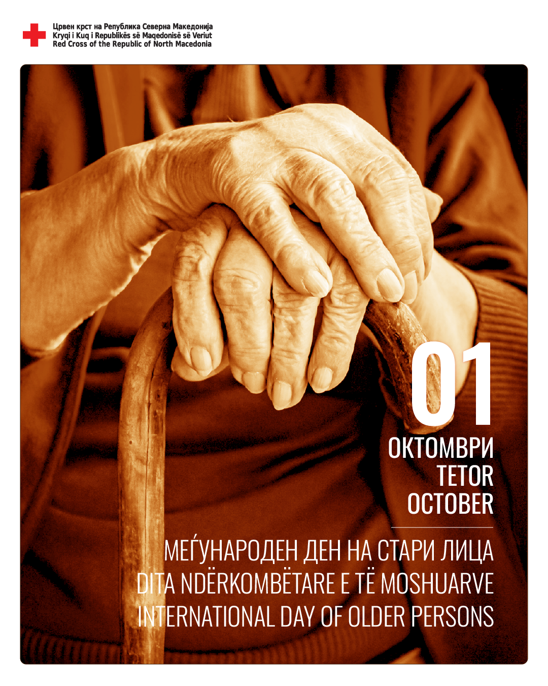 Црвениот крст на Република Северна Македонија и оваа година се вклучува во одбележување на 1 октомври – Меѓународен ден на старите лица, кoj е назначен од страна на Генералното собрание на Обединетите нации на 14 декември 1990 година. Меѓународен ден има за цел да ја подигне јавната свест за стареење на населението и да ги охрабри општествата да развиваат системи што ги поддржуваат постарите лица во исполнување и активен живот. Оваа година темата е „Застапување за здраво и инклузивно стареење“.