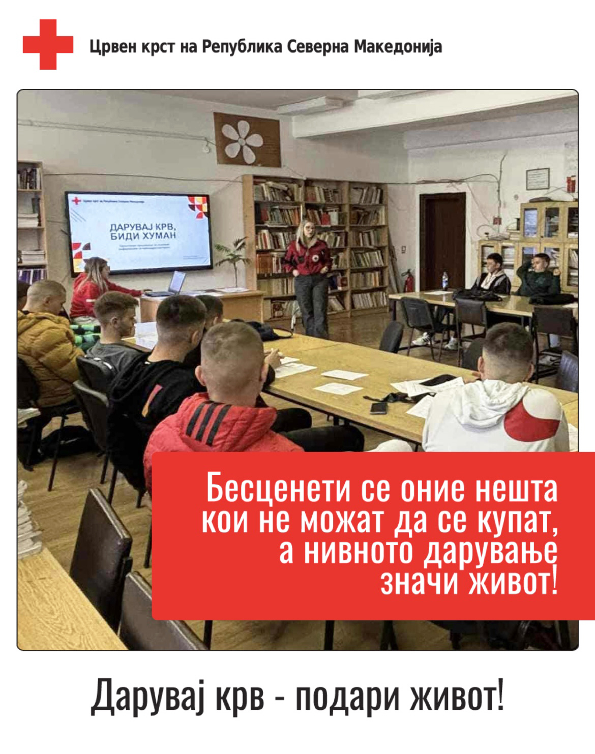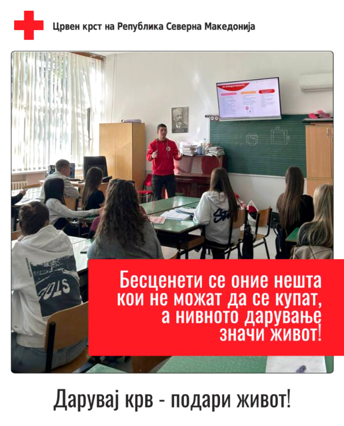 На мотивациските сесии, младите имаа можност да се запознаат детално со процесот на дарување на крв, со цел нивно поттикнување за идно вклучување во мрежата на редовни дарители, како и зголемување на бројот на прводарители.